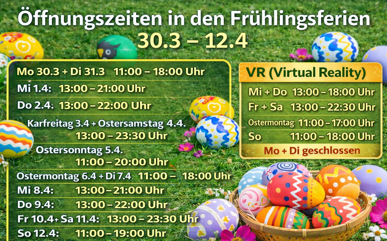 Wenn euch diese Schwarzlicht-Welten noch nicht gänzlich gereicht haben, dann wartet mit unserer revolutionären VIRTUAL ARENA – die grösste Spielfläche der Schweiz und einer der grössten von ganz Europa! - ein immersives Universum, voller Spass und Action, wo bis zu 16 Spielern gleichzeitig agieren können, auf euch.