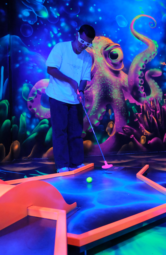 | Fitpass Kunden können einmal pro Woche mit dem Fitpass Schwarzlichtminigolf spielen. |